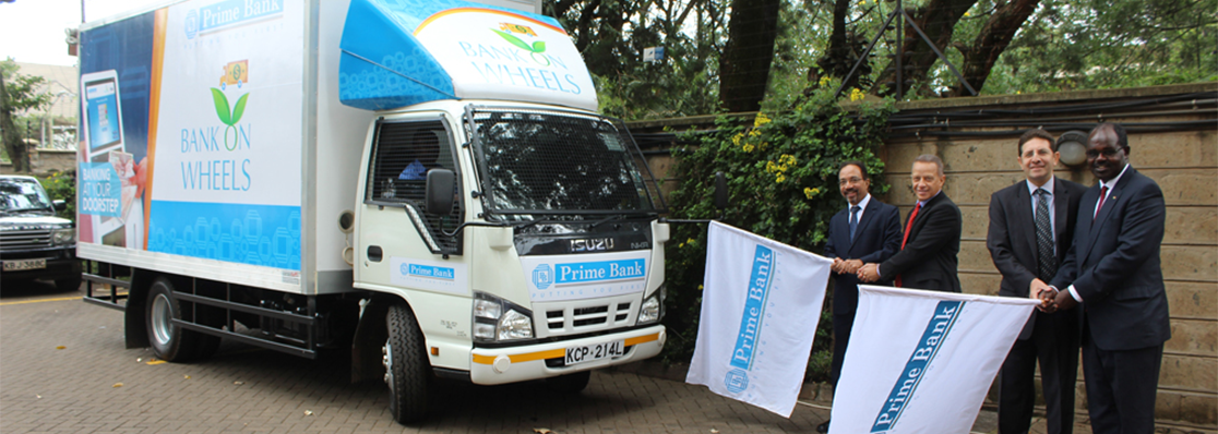 The Bank on Wheels was flagged off at Prime Bank, Head office, Riverside Drive by Dr. Habil Olaka, Chief Executive Officer of the Kenya Bankers Association(KBA) and Mr. Nicholas Nesbitt, Chairman of Kenya Private Sector Alliance (KEPSA).