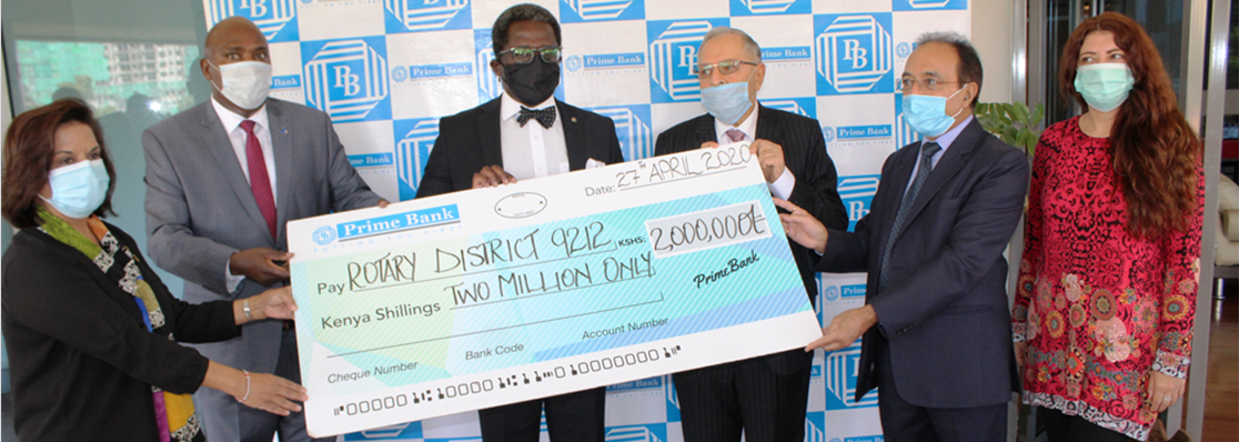 As part of its commitment to support efforts to flatten the Covid-19 pandemic curve, Prime Bank has donated KShs. 2 Million to the Rotary District 9212 Emergency Response Team on Monday, 27 April 2020.